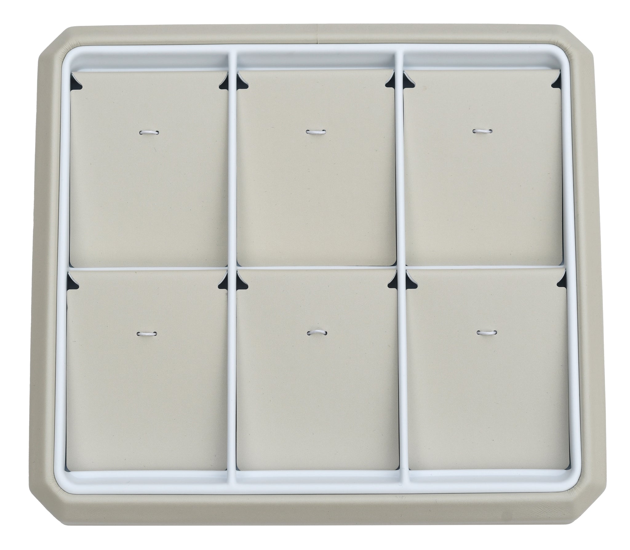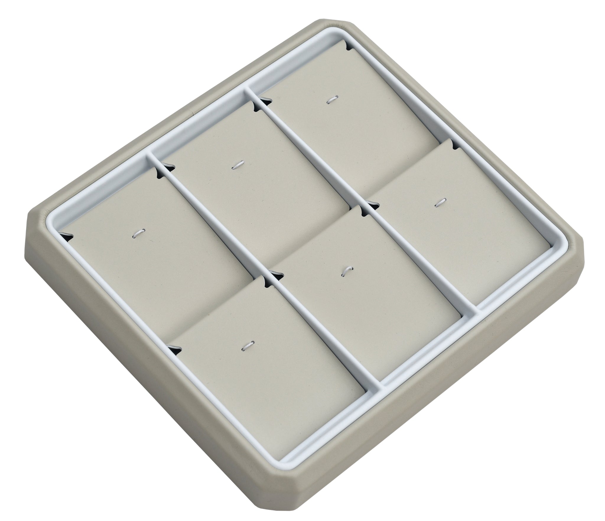 Features interchangeable pads with any other 6 space trays for matching jewelry sets.