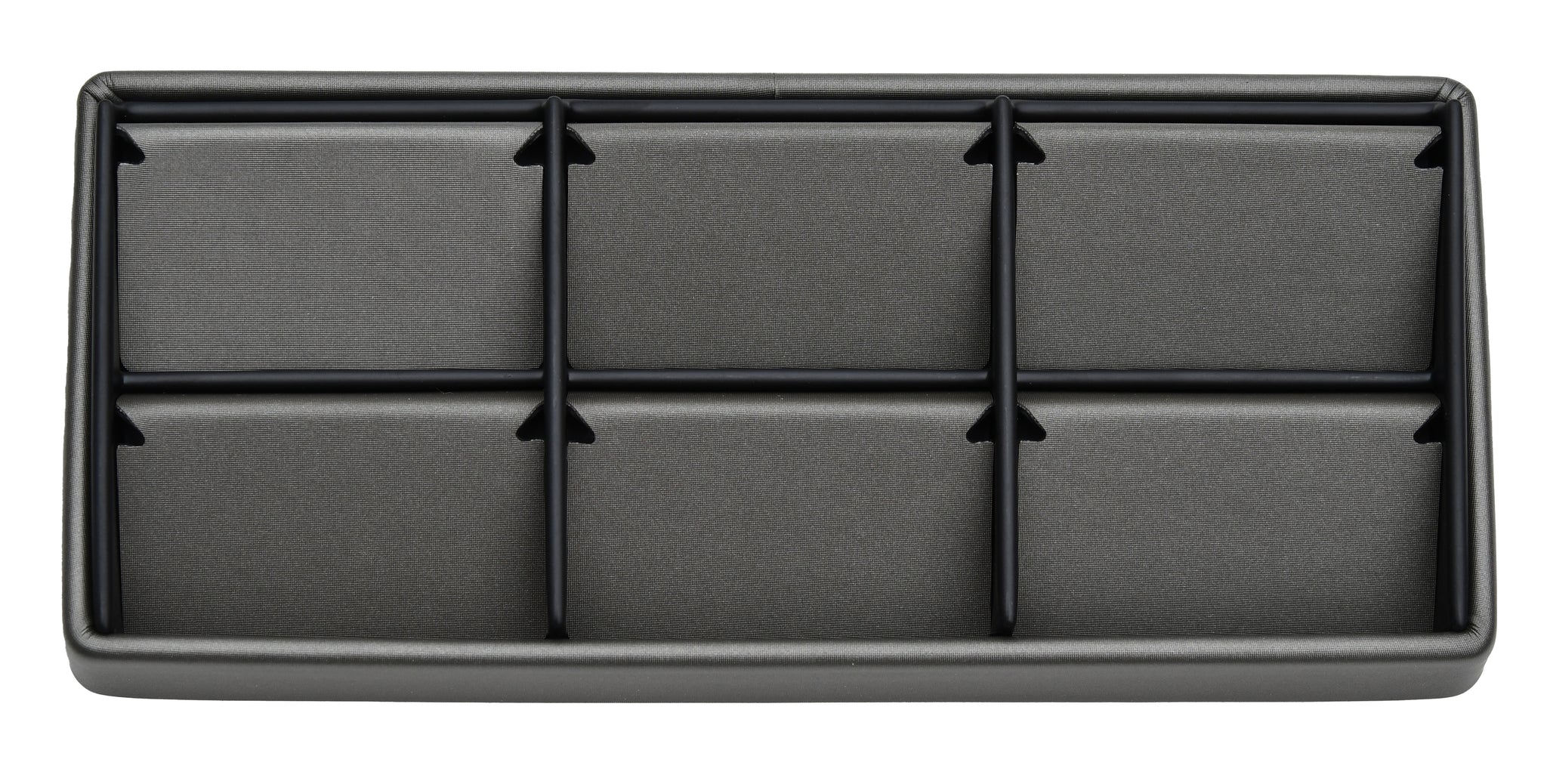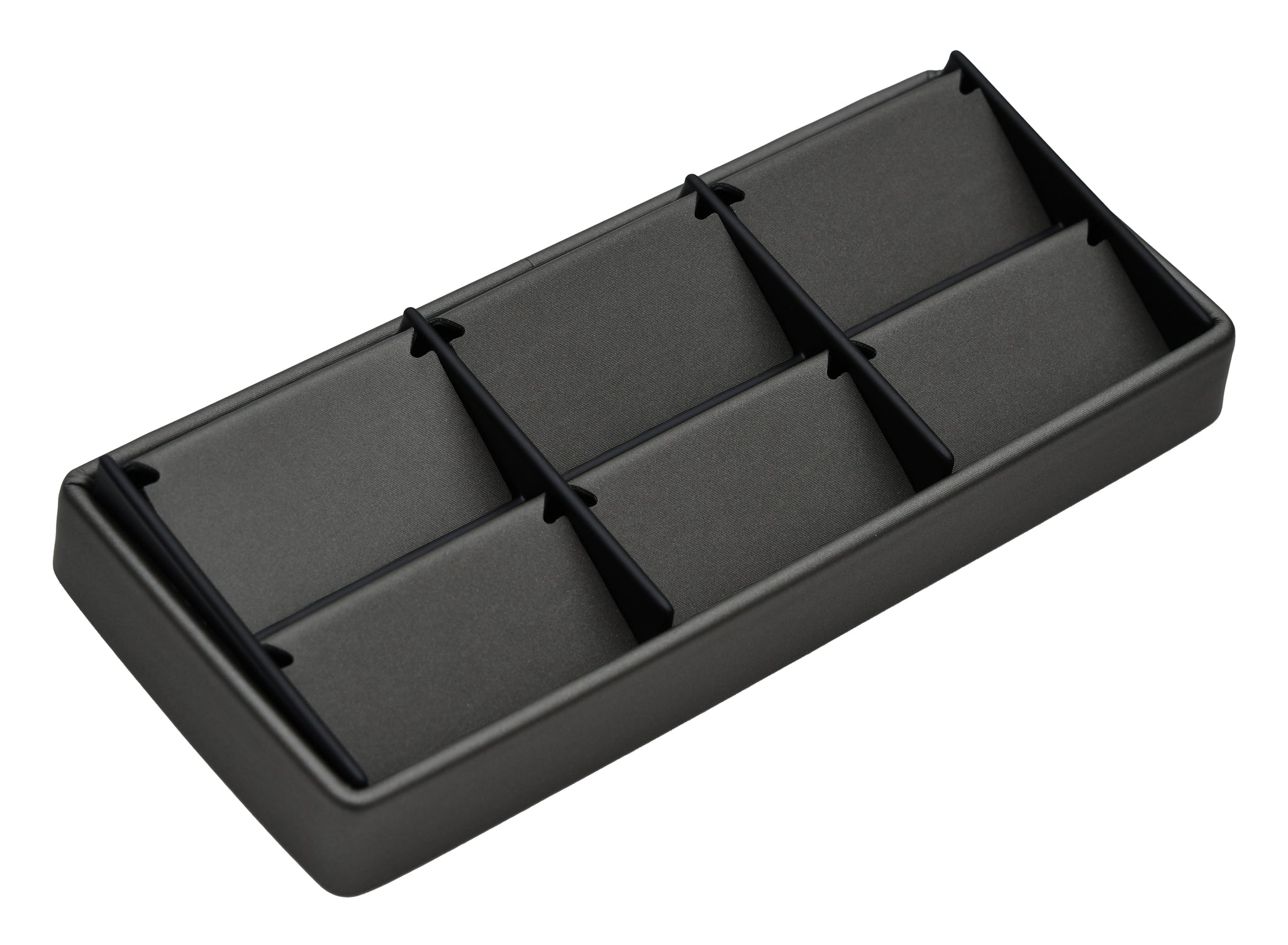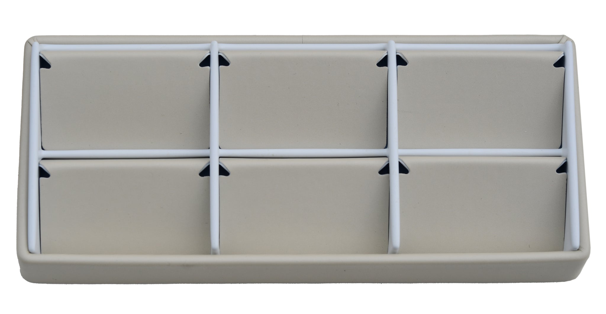 Features interchangeable insert pads with any other 6 space trays for matching jewelry sets.